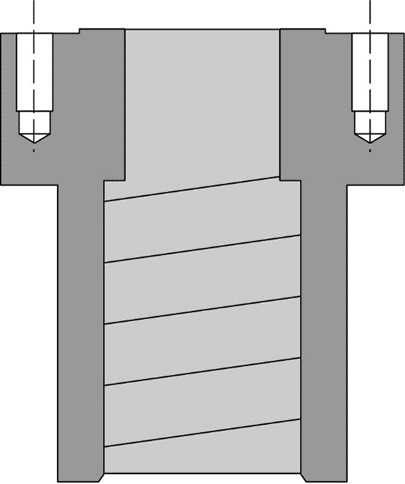 Figure 2: Even a light machined thread inside the bearing carrier acts as an Archimedes screw, the crudest form of a pump. It can lift oil from the sump to where the bearing carrier fits on the shaft, causing leakage.